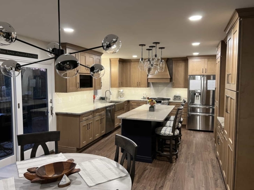 “My clients love the convenience, space, automation, and lighting of modern kitchens. They also like how natural woods are mixing in with painted cabinets to give two tone patterns. Quartz countertops are trending toward lighter colors with more natural looking patterns. “