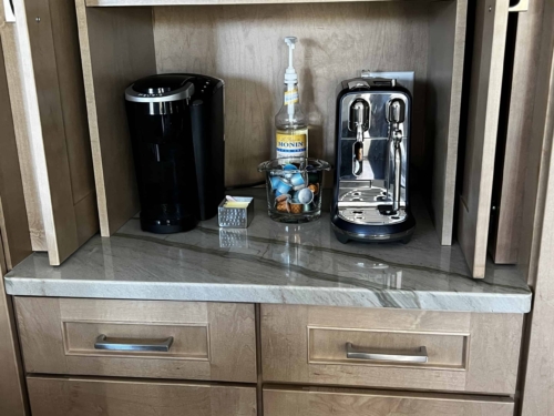 “Mostly, it’s about keeping their kitchen organized: Everything has a place, and that place should be space-saving, attractive, and easily accessible. Of course, with the coffee bar, it’s not just about hosting. As more people work remotely, homeowners want to make their own coffee, cappuccino, or espresso—instead of making a trip to Starbucks!”